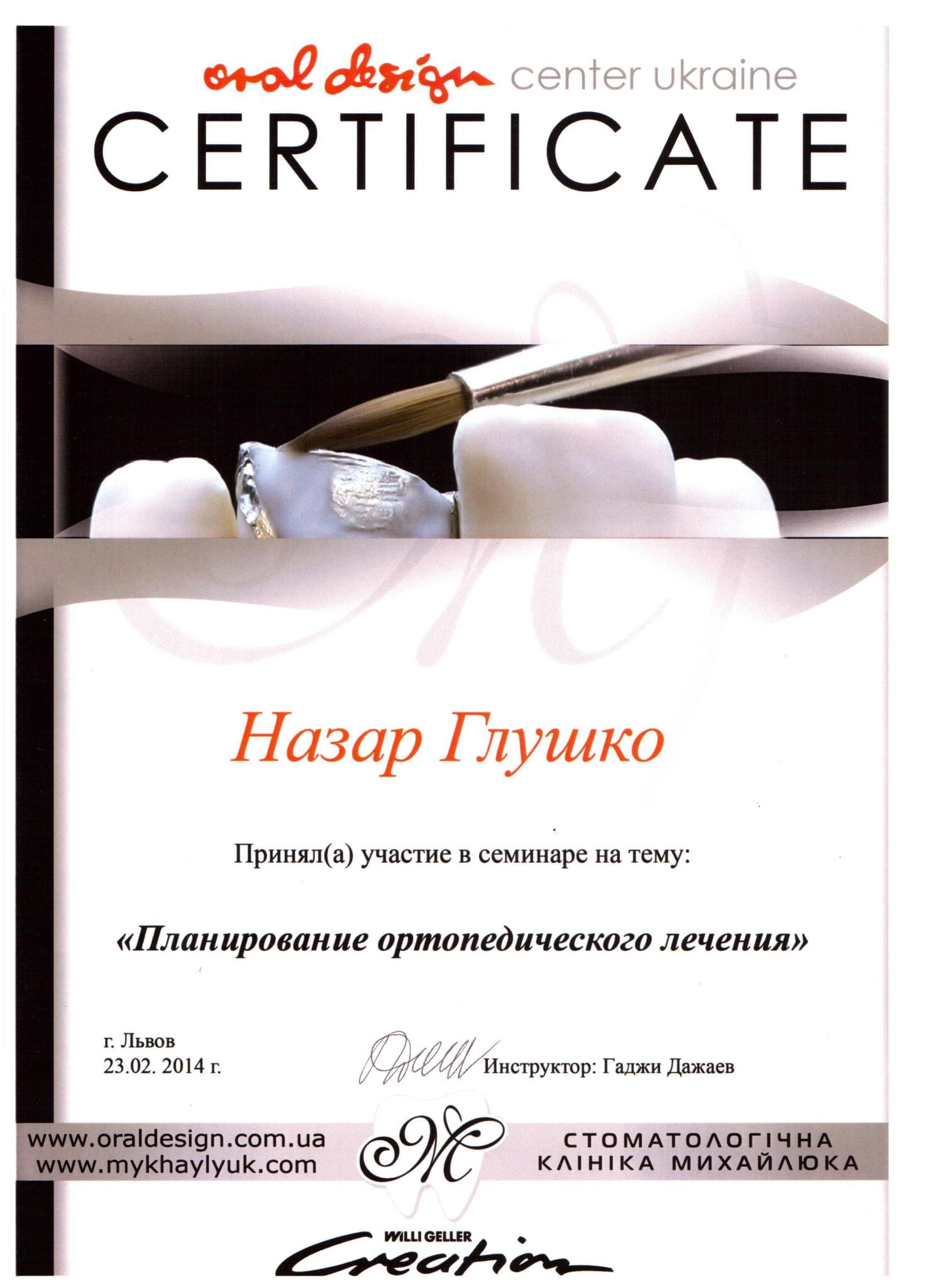 Наша концепція — це результат сімейної справи, котра була започаткованою Романом і Галиною Глушко — подружжям зубних техніків, які почали своє професійне зростання ще в далекому 1980 році в державних структурах. Потім було навчання в Канаді, Німеччині, Польщі, як результат створення особистої невеликої, але продуктивної лабораторії, яка базувалась на виготовленні естетичних кераміних надбудов.